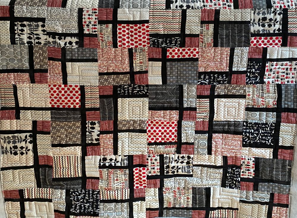 Bauhaus, ein digitales Allover-Quiltingmuster der Gruppe „Geometrisch/ Modern“. Flächenfüllend aber nicht ganz regelmäßig, so dass ein Blickfang entsteht, der ´sich aber nicht aufdrängt. Das Muster hat zwei Variationen: abgerundete und 90 Grad Ecken, je nach Geschmack.