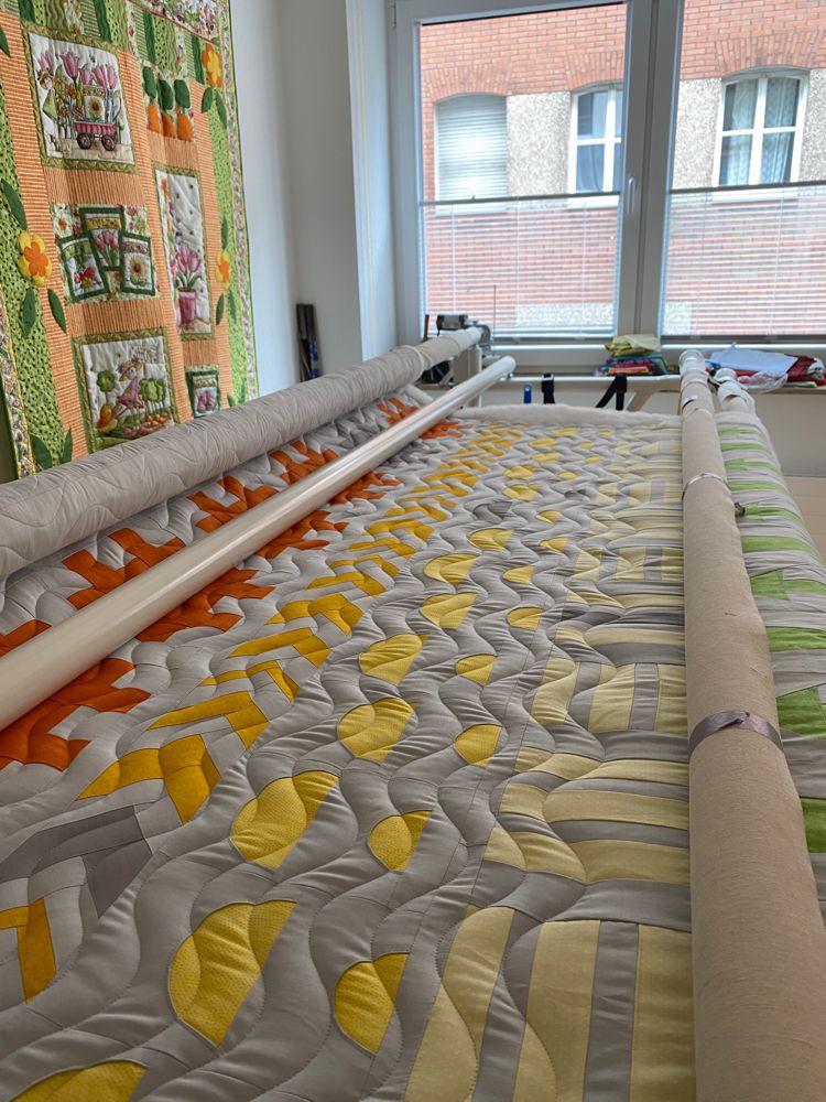 Wellen und Zacken, eine Gruppe von Mustern, die einfache aber doch sehr unterschiedliche Effekte liefert. Ich möchte hier einige Beispiele zeigen, wie sich Veränderung von Wellenlänge und Amplitude auf das Quiltingresultat auswirken.